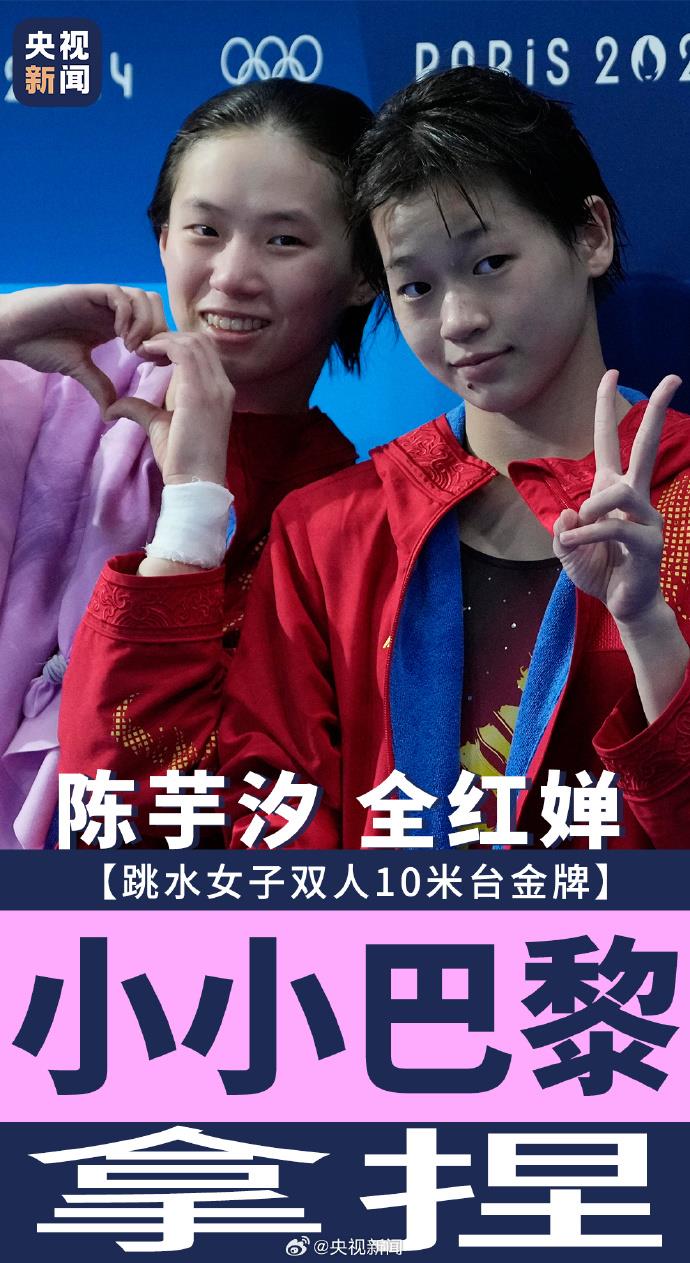 賽后,全紅嬋掛在陳芋汐身上退場時,復(fù)刻經(jīng)典慶祝動作:“小小巴黎,拿捏!”
