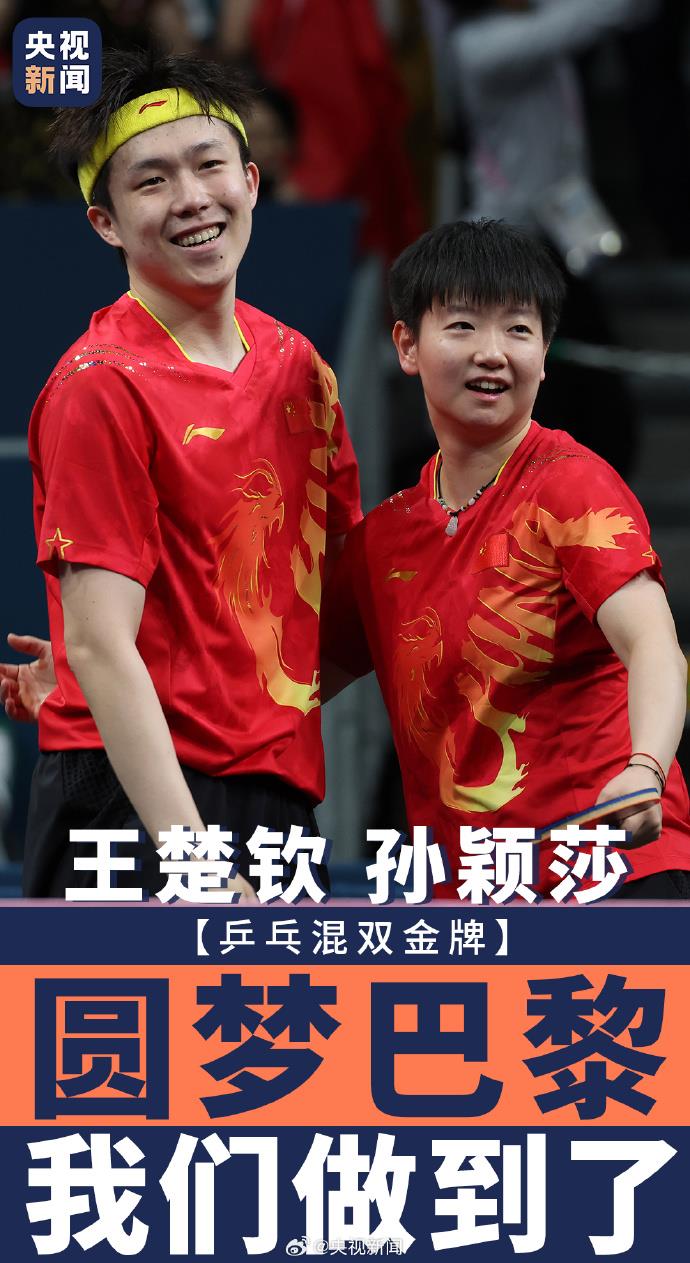 7月30日,在巴黎奧運(yùn)會乒乓球混合雙打決賽中,中國組合王楚欽/孫穎莎4-2戰(zhàn)勝朝鮮組合,奪得金牌?!拔覀冏龅搅耍 睎|京的遺憾在巴黎畫上了一個圓滿的句號!