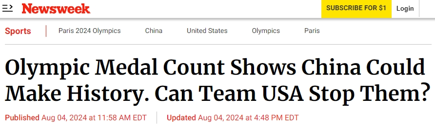 中國日報網(wǎng)8月5日電 2024巴黎奧運會賽程已過半。截至北京時間5日16時10分,中國隊以20金15銀12銅,總共47枚獎牌的優(yōu)異表現(xiàn),位居獎牌榜第一。外國媒體對于中國隊在本屆奧運會網(wǎng)球、游泳等項目上的突破以及在傳統(tǒng)優(yōu)勢項目上一如既往的穩(wěn)健表現(xiàn)給予了相當大的關(guān)注。