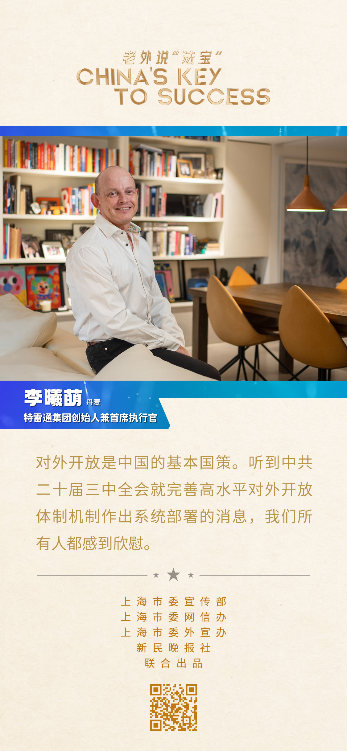 1995年,李曦萌再次回到上海,創(chuàng)辦了特雷通集團,將北歐家具引進中國市場。從那時起,他便在上海落地生根、成家立業(yè)。李曦萌娶了“上海老婆”,成了“上海女婿”,還熱衷于服務(wù)社區(qū)。李曦萌說,上海是一個有溫度的城市,希望更多人能夠來上海親身感受這座城市的魅力。