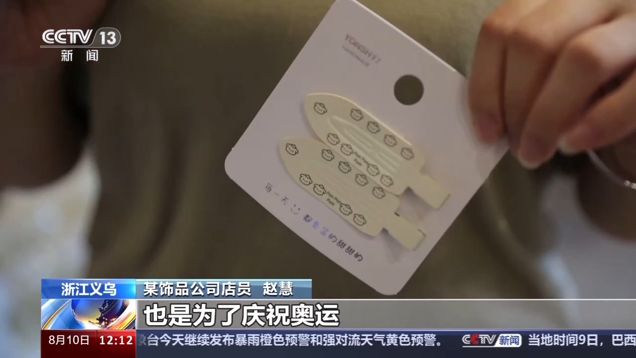 7月27日,隨著黃雨婷、盛李豪組合在巴黎奧運(yùn)會(huì)上贏得射擊混合團(tuán)體10米氣步槍金牌,黃雨婷佩戴的發(fā)夾也引起網(wǎng)友的關(guān)注,迅速成為社交媒體的熱門話題。在義烏國(guó)際商貿(mào)城,同款發(fā)卡再次“爆單”,銷售量得到顯著增長(zhǎng)。