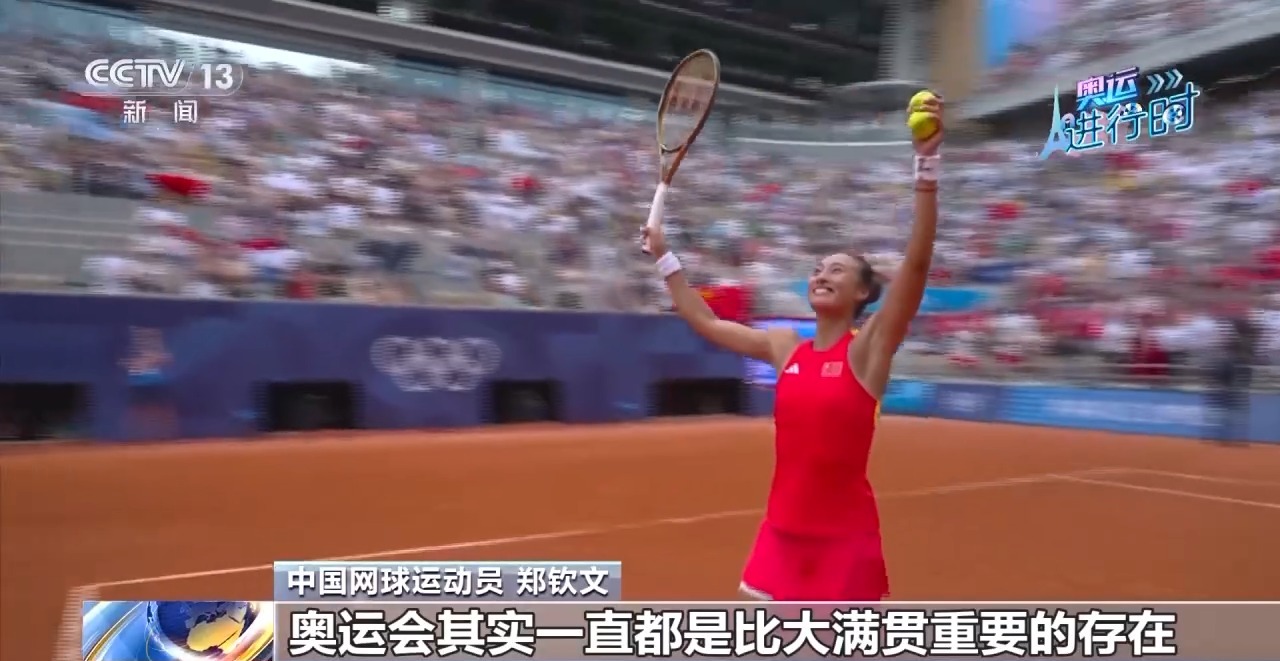 中國(guó)網(wǎng)球運(yùn)動(dòng)員 鄭欽文:對(duì)我還有我的家人來(lái)說(shuō),奧運(yùn)會(huì)其實(shí)一直都是比大滿貫重要的存在。因?yàn)樵谖覀冃闹?,?guó)家的榮譽(yù)永遠(yuǎn)是要超過(guò)個(gè)人的榮譽(yù)。