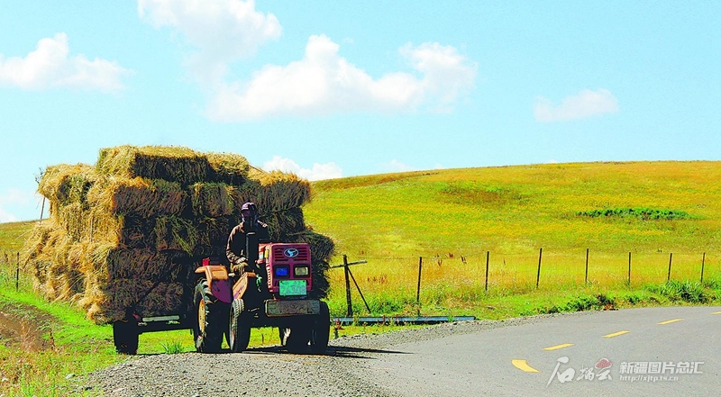 8月8日,位于裕民縣巴爾魯克山區(qū)的阿克喬克草原,牧民駕駛拖拉機拉運草料。近年來,該縣通過對農(nóng)村公路升級改造,優(yōu)化了城鄉(xiāng)公路網(wǎng),為農(nóng)牧民出行、農(nóng)作物運輸提供更多便利條件。 楊化光攝