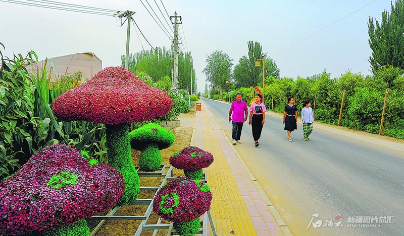 8月8日,洛浦縣恰爾巴格鎮(zhèn)闊恰艾日克村村民在家門口的柏油路上散步。買買提艾力·艾尼瓦爾攝