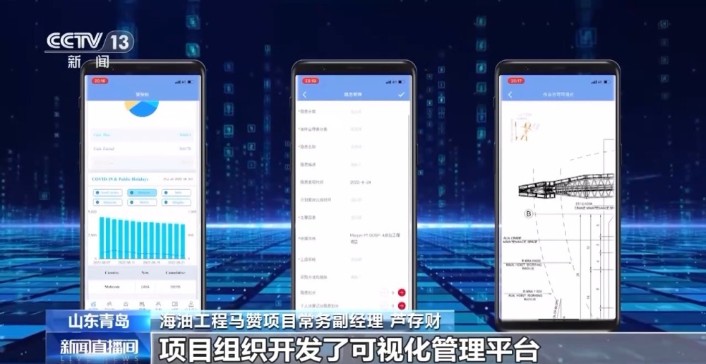 海油工程馬贊項(xiàng)目常務(wù)副經(jīng)理 蘆存財(cái):對(duì)一個(gè)總重近2萬噸的超級(jí)組塊,平臺(tái)材料、設(shè)備成千上萬,項(xiàng)目組織開發(fā)了可視化管理平臺(tái),通過數(shù)字模擬、建造孿生技術(shù)實(shí)現(xiàn)建造全流程的數(shù)字化管控。