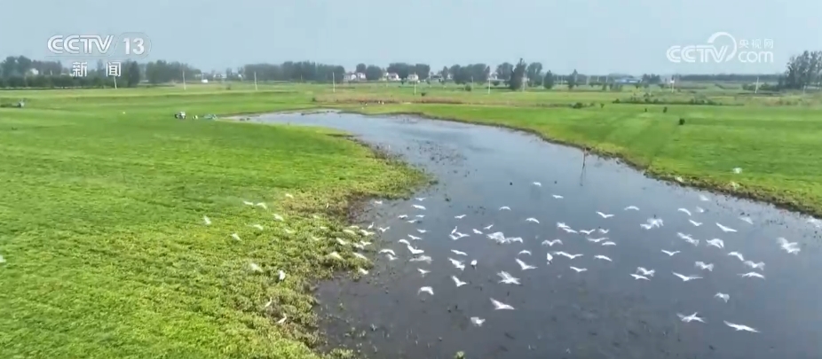 在河南周口市淮陽區(qū),由于近期降雨頻繁,當?shù)毓胚\河不少低洼地帶變成灘涂濕地,多群白鷺匯聚于此,棲息覓食。