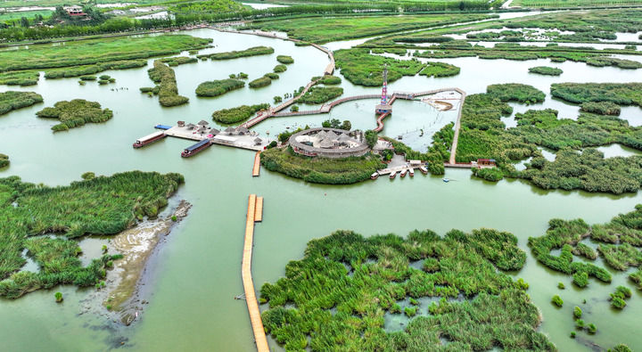 清理湖底沉積物150萬立方米,建成13.2公里防滲隔離溝,建造6000畝人工濕地并種植菖蒲、蘆葦?shù)戎参镂絻艋廴疚铮w出景區(qū)內(nèi)污水處理廠……