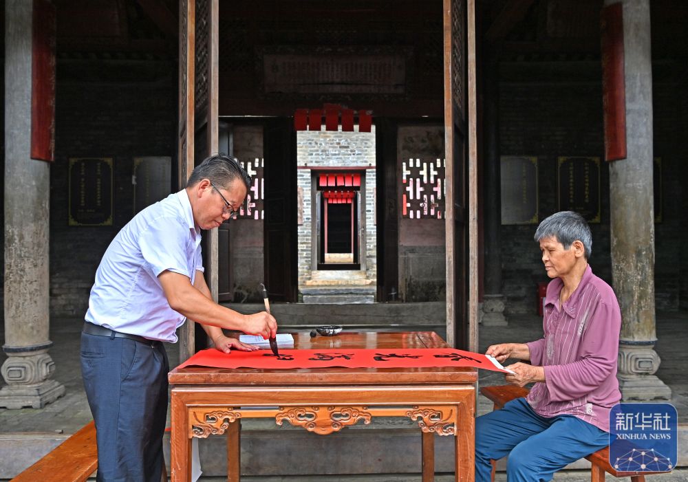 8月15日,一名楹聯(lián)愛(ài)好者在大蘆村古宅里寫(xiě)對(duì)聯(lián)。