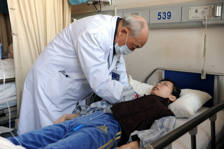 瑞金醫(yī)院終身教授王振義在上海瑞金醫(yī)院為病人看?。ㄙY料照片)。 新華社發(fā)
