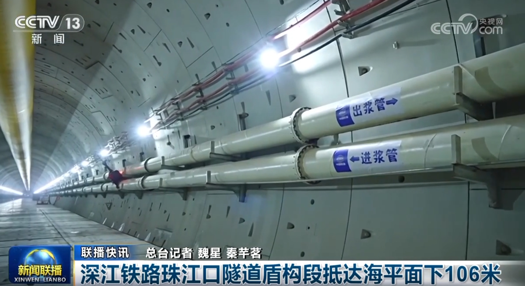 深江鐵路珠江口隧道盾構段抵達海平面下106米