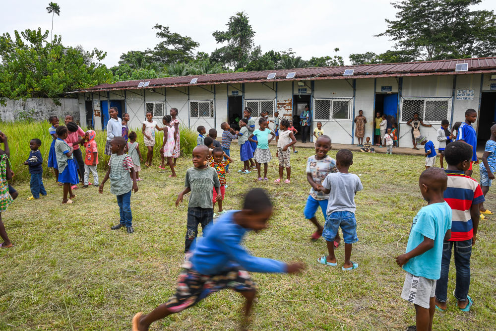 太陽升起,陽光灑在幾內(nèi)亞灣畔的喀麥隆克里比深水港。在距港口約25公里的恩杜馬萊村,10歲的布賴恩·芒格來到村里的小學參加暑期課外活動。