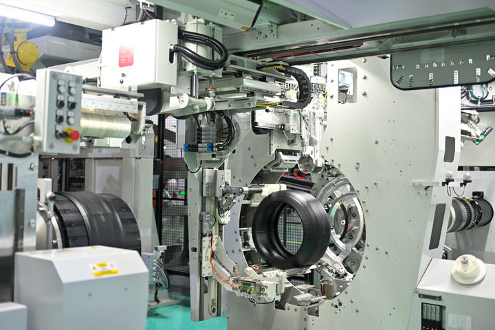 這是2024年7月26日拍攝的浙江杭州中策錢塘實(shí)業(yè)有限公司輪胎數(shù)字工廠車間內(nèi)的自動(dòng)化輪胎生產(chǎn)線。新華社記者 江漢 攝