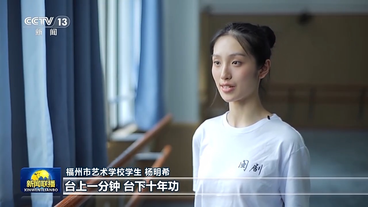 福州市藝術(shù)學(xué)校學(xué)生 楊明希:勤學(xué)苦練,振興閩劇,這八個(gè)字時(shí)刻提醒我們臺(tái)上一分鐘,臺(tái)下十年功。我們要學(xué)好文化,又要學(xué)好專(zhuān)業(yè),學(xué)閩劇一定要吃苦才能把基本功打?qū)崱?/p>