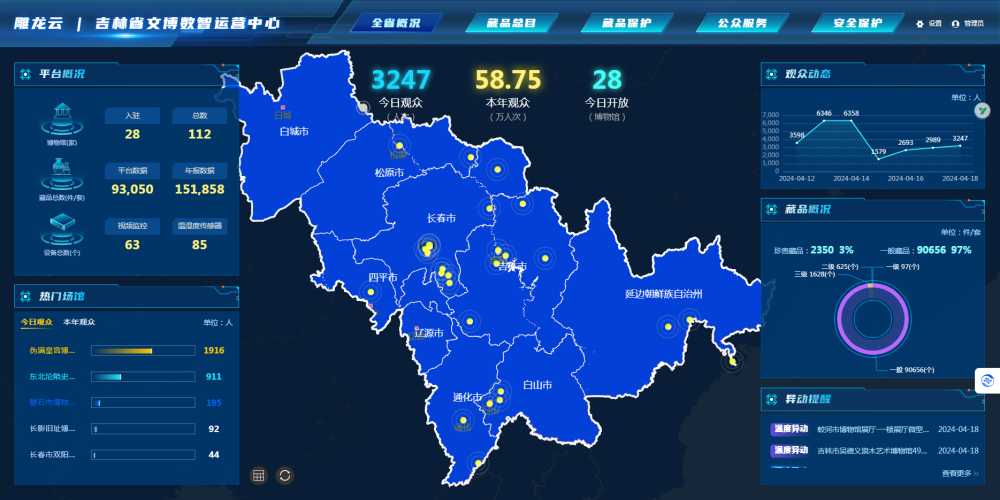 偽滿皇宮博物院和長春市文博數智創(chuàng)新研究院負責這一計劃的具體執(zhí)行。不久,一個基于云計算、大數據等技術的軟件系統(tǒng)——“雕龍云”博物館運營云平臺應運而生?!八拿秩∽浴段男牡颀垺?,意在精雕細琢地做好博物館的管理工作?!眰螡M皇宮博物院信息部主任艾雪松說。