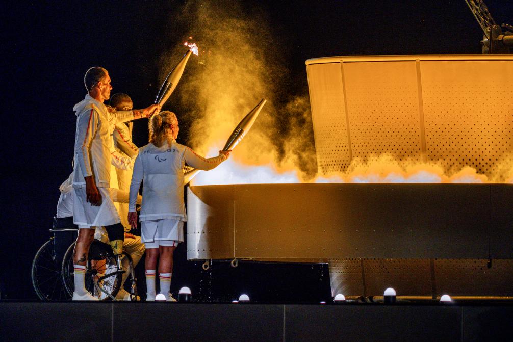 8月28日,火炬手在巴黎殘奧會開幕式上點(diǎn)燃主火炬。新華社記者 黃偉 攝