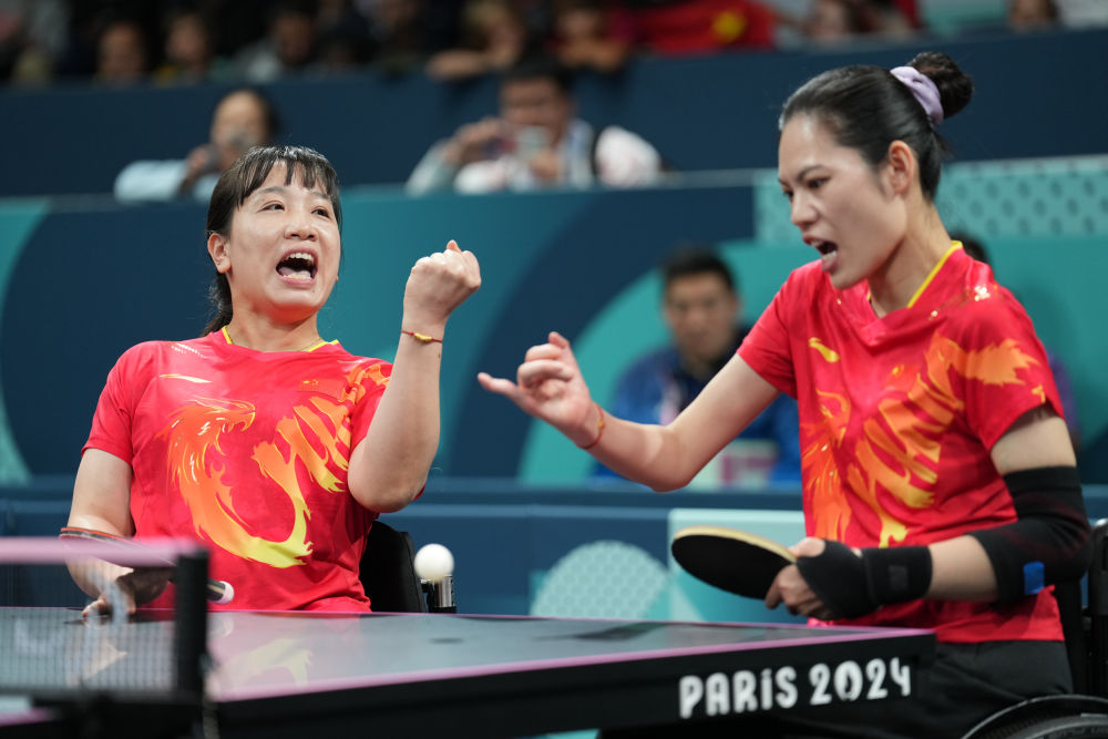 女雙14級(jí)決賽上,19歲的黃文娟搭檔16歲的金芋成,以3:1戰(zhàn)勝德國(guó)組合格雷貝/沃爾夫,贏得本屆殘奧會(huì)乒乓球首金。隨后的女雙5級(jí)決賽,36歲的劉靜搭檔34歲的薛娟,以3:1擊敗韓國(guó)組合徐秀妍/尹智裕,為中國(guó)隊(duì)再添一金。