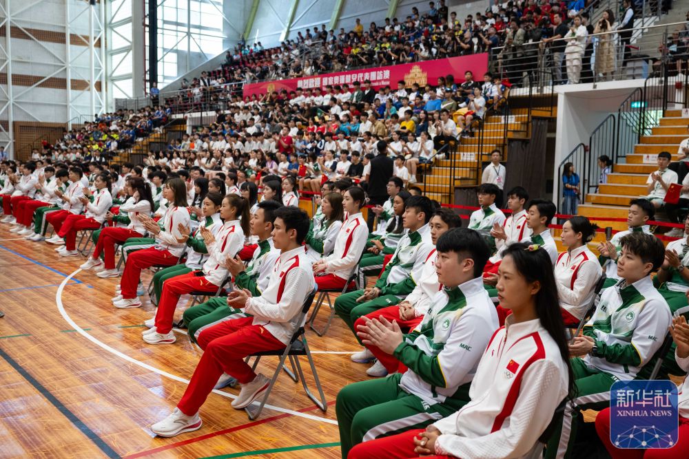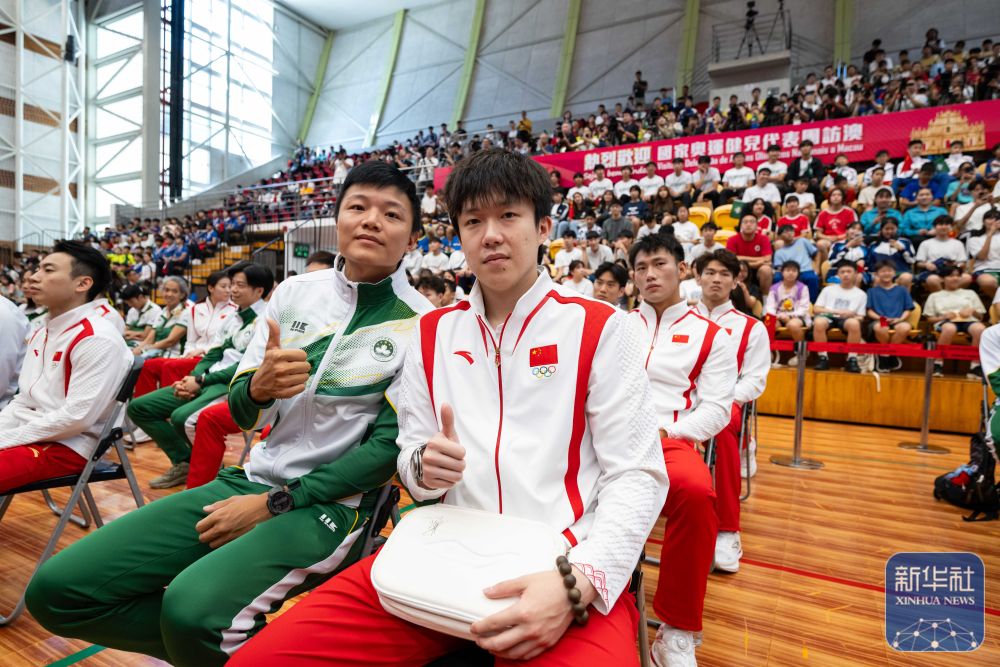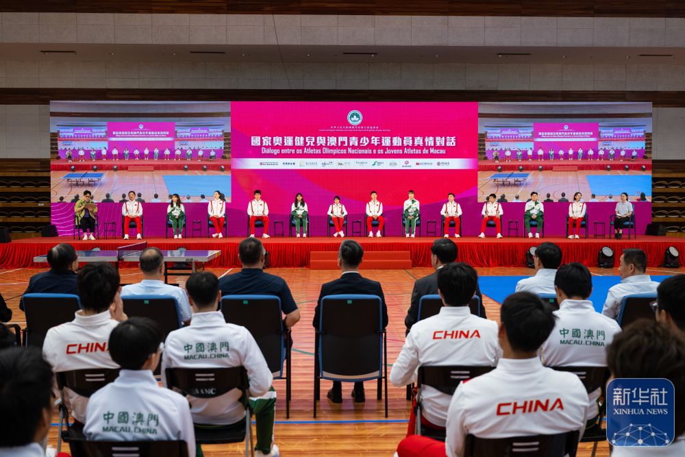 9月1日,內(nèi)地奧運健兒代表團在澳門奧林匹克體育中心室內(nèi)體育館與澳門青少年運動員進行互動交流。