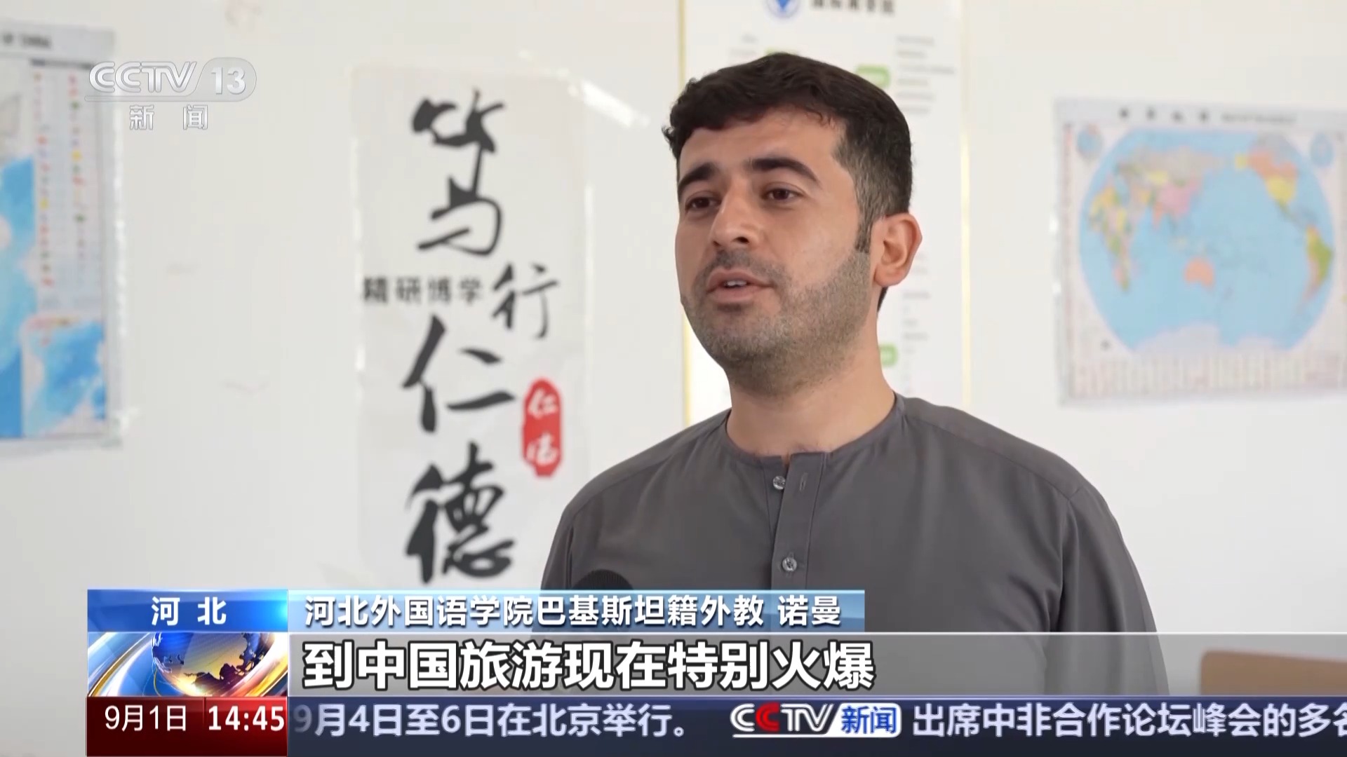 河北外國語學院巴基斯坦籍外教 諾曼:到中國旅游現(xiàn)在特別火爆,包括巴基斯坦在內,許多國家的人都來到中國,愛上了中國的美食和文化,感受這里各種便捷舒適的生活方式,我身邊還有很多留學生朋友都很享受在這里的學習生活。