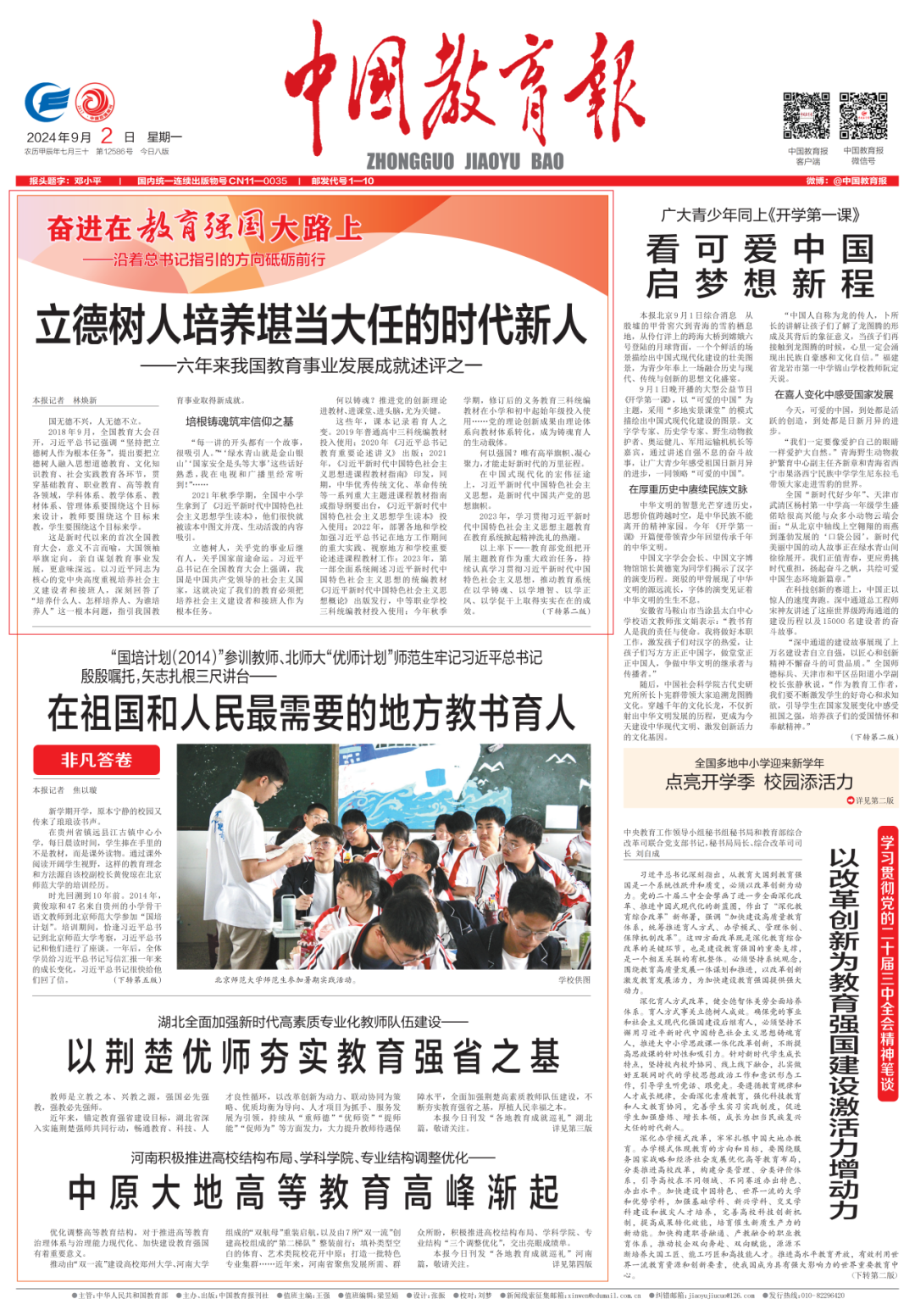 到2035年建成教育強國,是黨中央作出的重要決策部署,是習近平總書記念茲在茲、殷切期盼的“國之大者”。教育系統(tǒng)牢記囑托,砥礪奮進,奮力書寫教育強國建設支撐引領中國式現(xiàn)代化的新篇章。日前,教育部新媒體矩陣推出“奮進在教育強國大路上——沿著總書記指引的方向砥礪前行”專欄,展示教育系統(tǒng)加快建設教育強國的生動實踐。