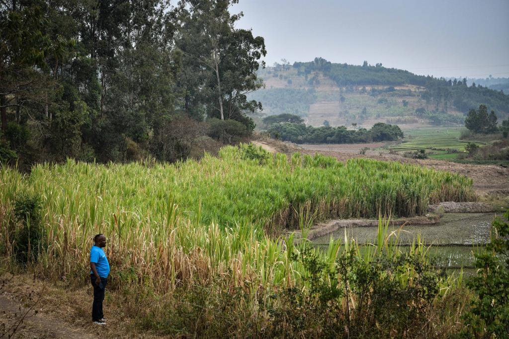 這是8月15日在盧旺達(dá)南方省胡耶區(qū)拍攝的菌草田。