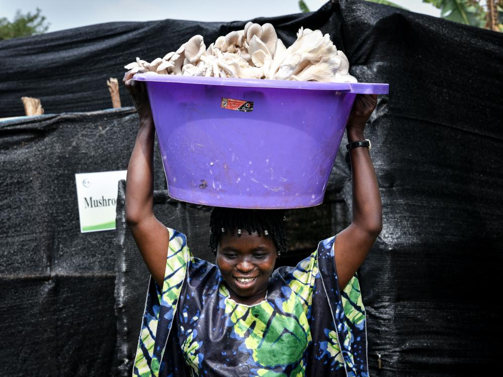 在盧旺達(dá)首都基加利郊外,養(yǎng)育著3個(gè)孩子的蘇珊娜·尼庫澤從事菌草食用菌培育行業(yè)已有十多年,收入遠(yuǎn)超當(dāng)?shù)仄骄?,但卻并不太滿意自己的現(xiàn)狀。