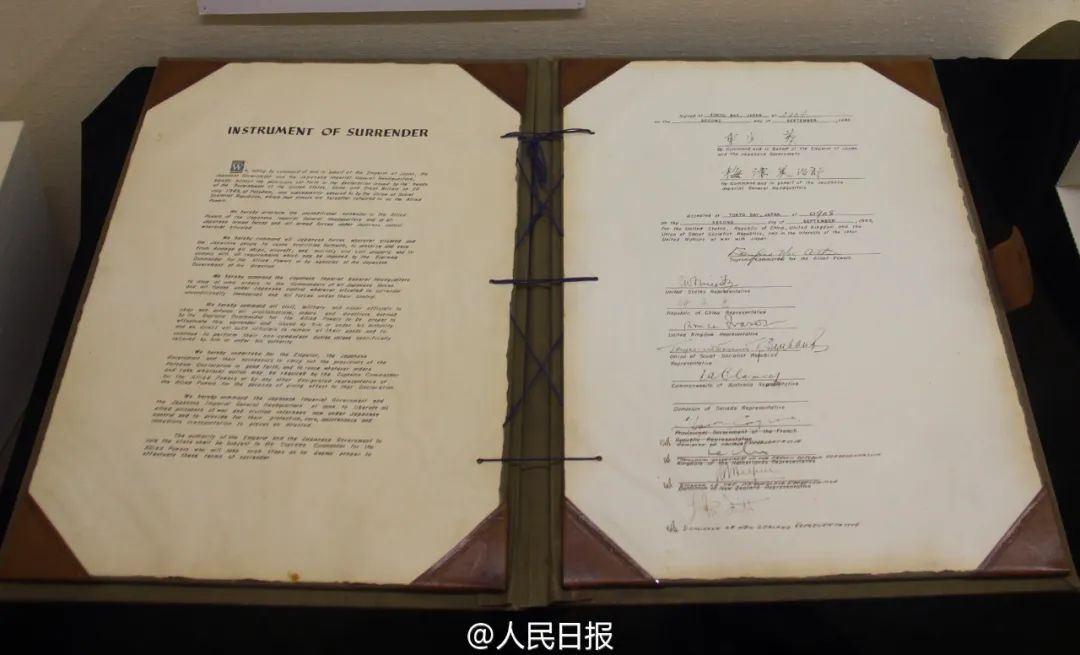 2015年8月31日,日本外務(wù)省展出1945年9月2日簽署的投降書原件。人民網(wǎng)記者 劉軍國 攝