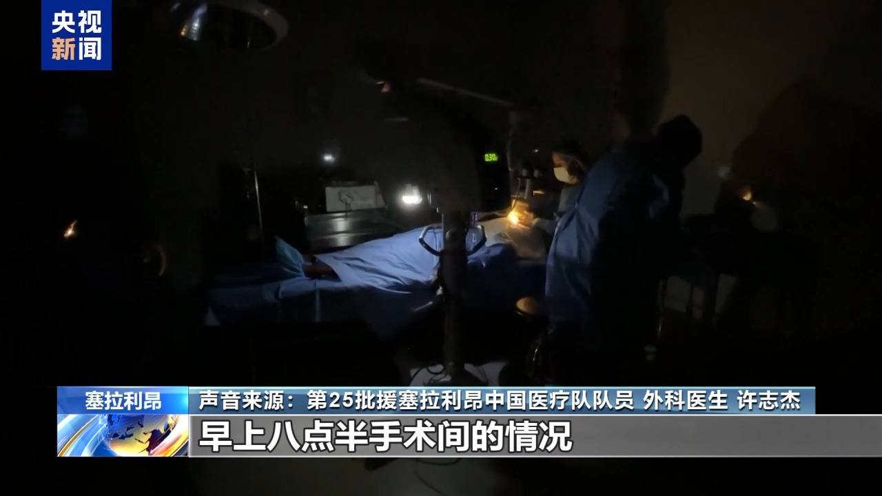 第25批援塞拉利昂中國醫(yī)療隊(duì)隊(duì)員 外科醫(yī)生 許志杰:做眼科手術(shù)第二臺,(患者)還沒打麻醉,突然停電了,大家就打著手機(jī)光,用著應(yīng)急電源在做手術(shù)。