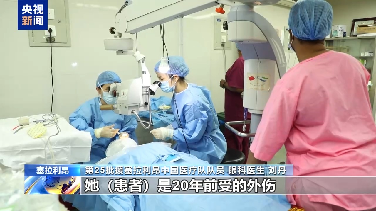 第25批援塞拉利昂中國醫(yī)療隊(duì)隊(duì)員 眼科醫(yī)生 劉丹:她(患者)是20年前受的外傷,然后角膜帶斑翳,就是虹膜粘連,很難的一個(gè)白內(nèi)障(手術(shù))。這里的白內(nèi)障都是好重的,是那種完全看不見的。