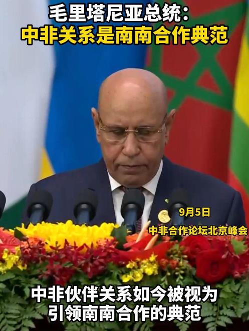 毛里塔尼亞總統(tǒng)加茲瓦尼5日在2024年中非合作論壇北京峰會開幕式上說,中非合作論壇為鞏固和發(fā)展非中伙伴關(guān)系搭建有效機(jī)制和高水平平臺,非中伙伴關(guān)系已成為南南合作的典范。