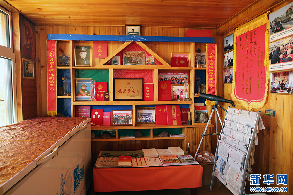 圖門家墻壁上,擺滿了一家三代戍邊的照片和榮譽證書。新華網(wǎng)石毅 攝