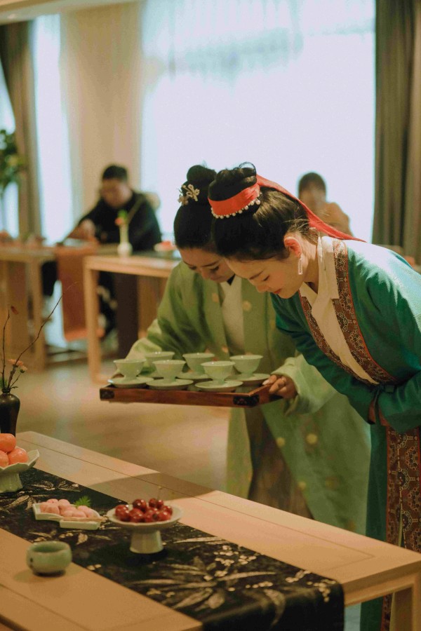 徑山茶宴堂設(shè)古雅,程式規(guī)范,主躬客莊,禮儀備至,依時(shí)如法,和洽圓融,蘊(yùn)涵豐富,體現(xiàn)了禪院清規(guī)和禮儀、茶藝的完美結(jié)合,具有品格高古、清雅絕倫的獨(dú)特風(fēng)格,堪稱中國(guó)禪茶文化的經(jīng)典樣式。