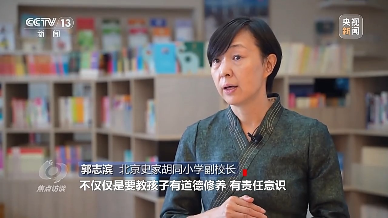 北京史家胡同小學副校長 郭志濱:不僅僅是要教孩子有道德修養(yǎng),有責任意識,還要有政治認同,有家國觀念。我們作為老師育人、育孩子、育心,育的是什么?育的是我們民族的文化,育的是我們對國家的認同和歸屬感。