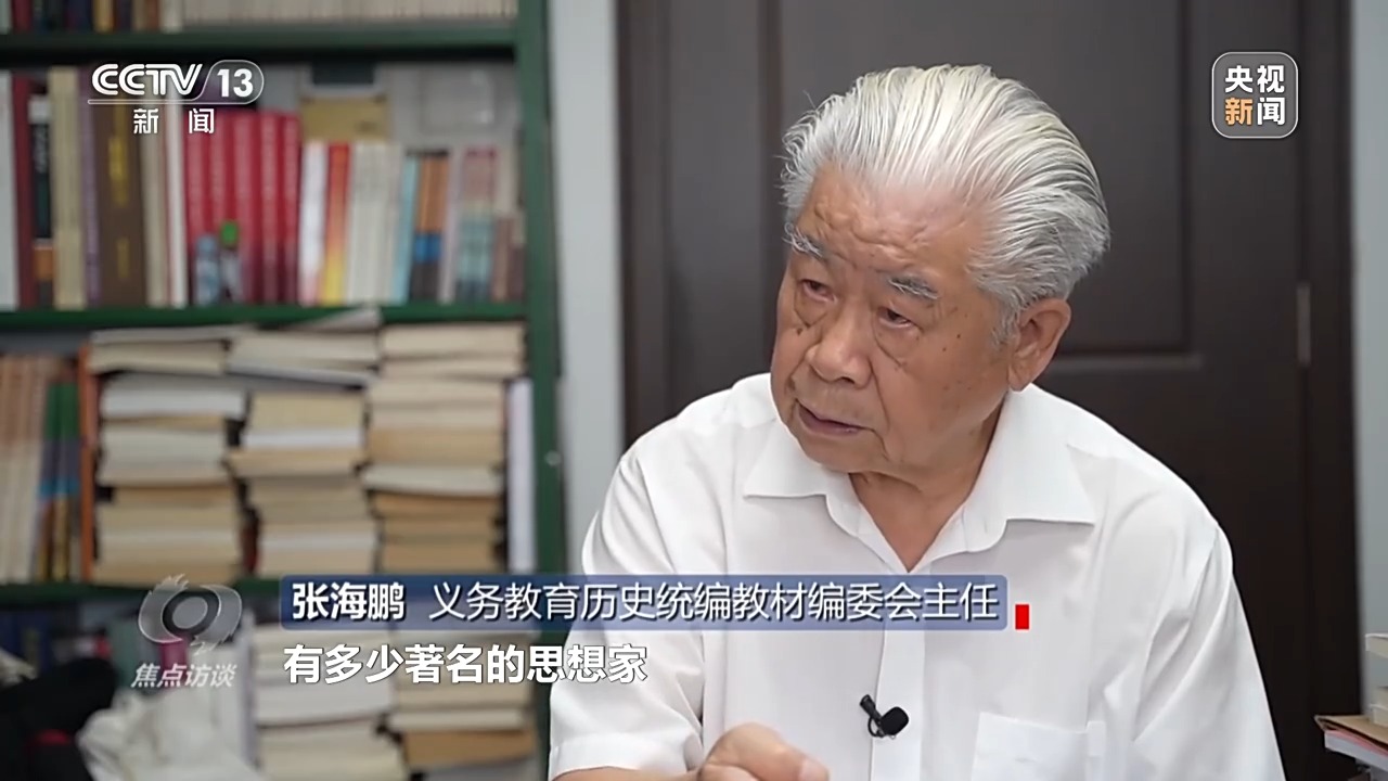 義務教育歷史統(tǒng)編教材編委會主任 張海鵬:講我們中國歷史上每一代有多少著名的思想家,有多少著名的政治家、軍事家、戰(zhàn)略家、科學家,對人類有貢獻的發(fā)明創(chuàng)造、文學藝術。這就是告訴我們,中華的文化是優(yōu)秀的,是值得我們熱愛的。