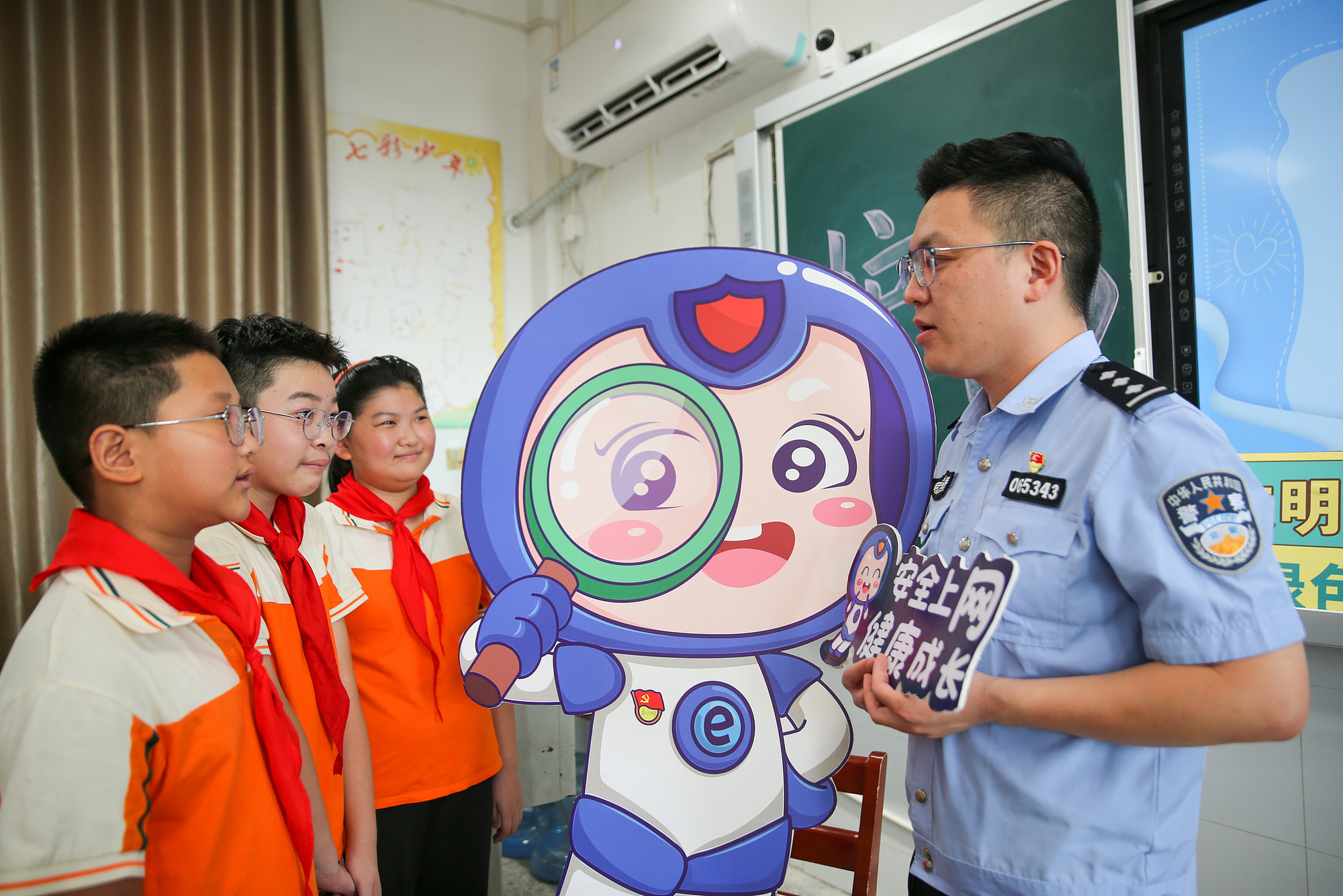 民警向?qū)W生普及安全上網(wǎng)、文明上網(wǎng)等知識(shí)