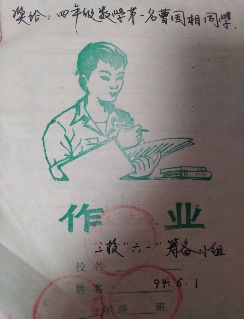 曹國相小學三年級時被老師獎勵的本子,他很珍惜。