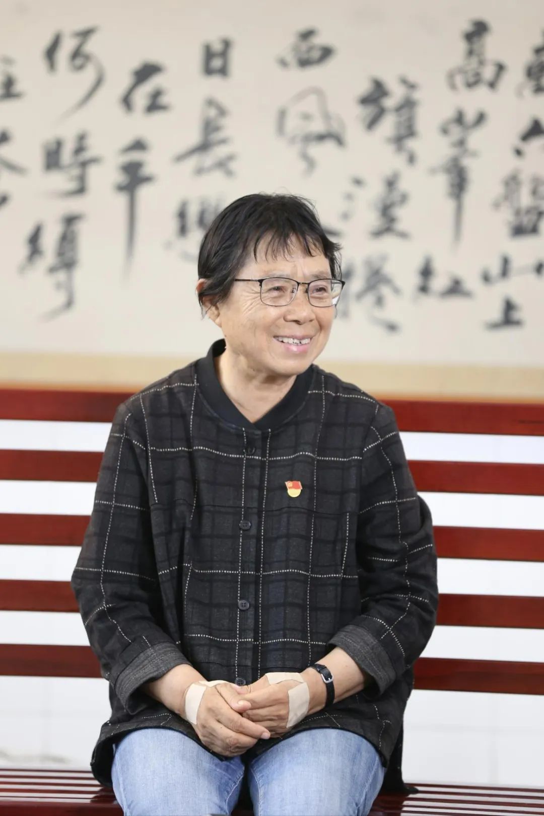 是她胸前一直佩戴著的黨員徽章