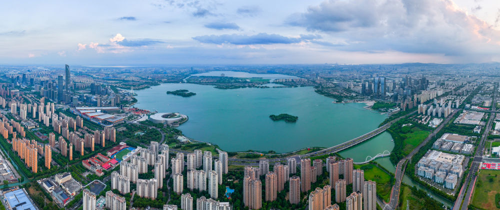 這是8月29日拍攝的蘇州金雞湖(無人機(jī)照片)。