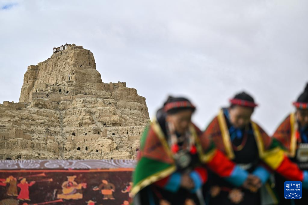 在西藏阿里地區(qū)札達(dá)縣古格王國(guó)遺址腳下,當(dāng)?shù)卮迕癖硌荨靶琛保?月11日攝)。