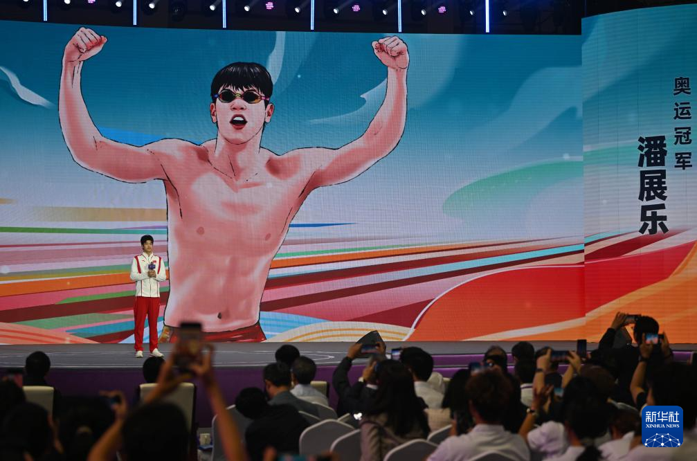 9月21日,奧運(yùn)冠軍潘展樂在臺(tái)上演講。新華社記者 李然 攝