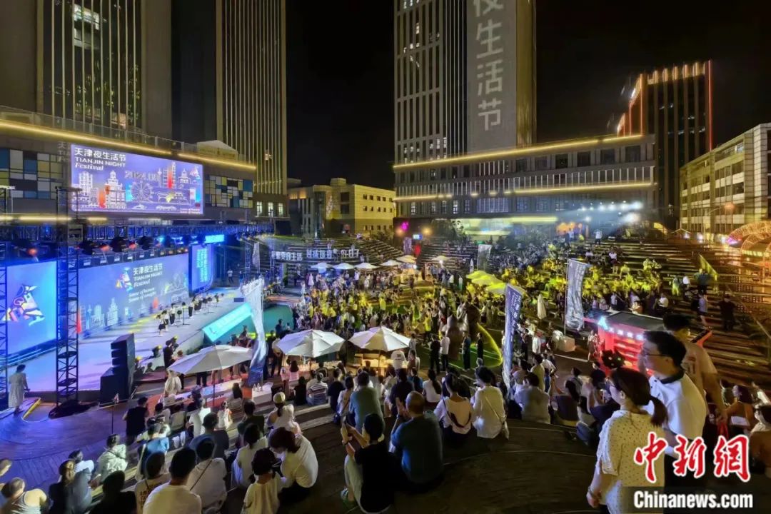 8月2日晚,由天津市商務局、天津市文化和旅游局、天津市體育局共同主辦的第五屆天津夜生活節(jié)啟幕。圖為民眾在啟動儀式上觀看文藝演出。中新社記者 佟郁 攝