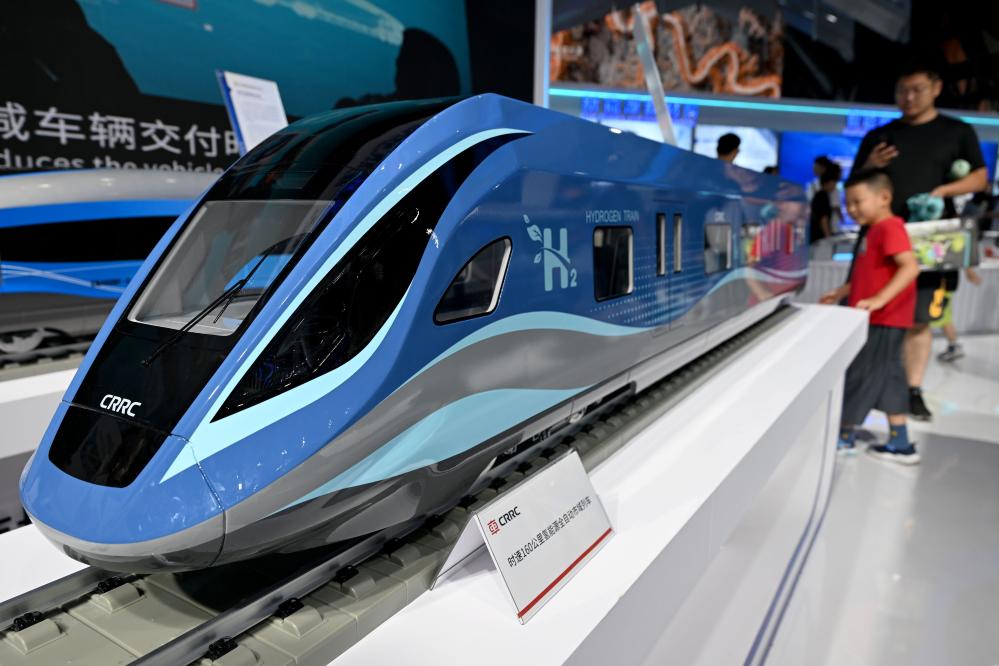 9月21日,在2024世界制造業(yè)大會(huì)上,人們參觀氫能源全自動(dòng)市域列車模型。新華社記者 黃博涵 攝