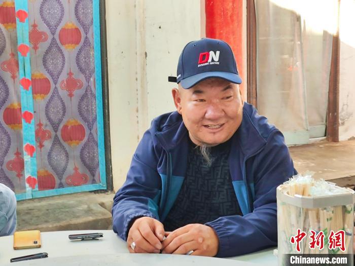9月20日,阿拉善右旗雅布賴(lài)鎮(zhèn)嘎查牧民阿拉騰格日樂(lè)接受記者采訪。中新社記者 陳溯 攝