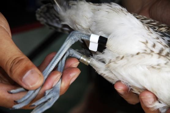 環(huán)志,簡單說就是給鳥“上身份”——在鳥腿上佩戴刻有唯一編碼和中國鳥類環(huán)志中心地址的金屬環(huán),有時(shí)還佩戴彩色塑料旗標(biāo)或塑料環(huán)?!巴ㄟ^環(huán)志可以得知鳥的基本信息、遷徙規(guī)律,包括年齡、繁殖地、越冬地、飛行途中在哪里停歇等?!眳俏≌f。