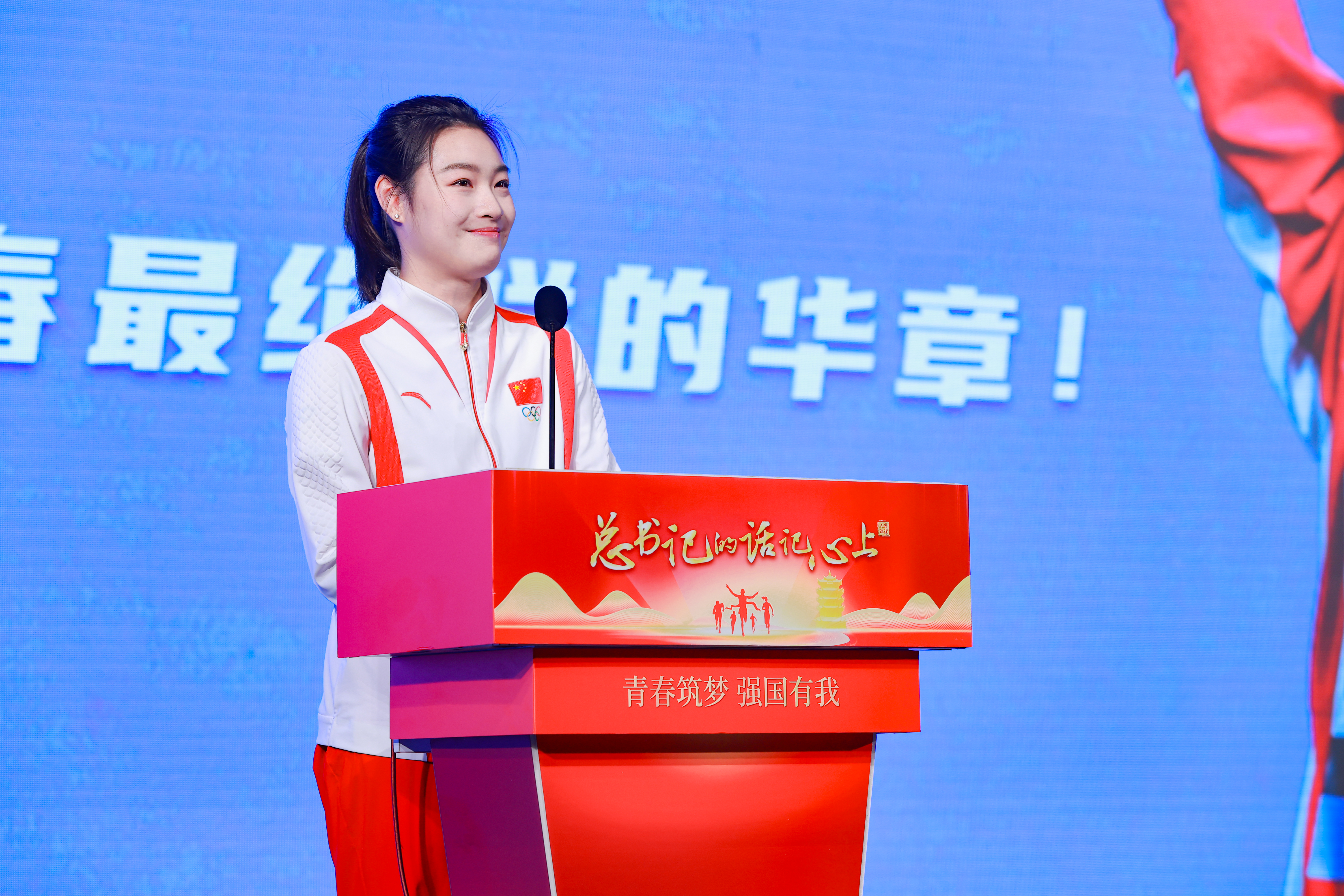 奧運冠軍昌雅妮驚喜亮相,一到現(xiàn)場就引起了學(xué)生們的歡呼與喝彩。她和同學(xué)們親密合影,引爆全場!接著,她登臺動情講述奪冠背后的故事:“從跳校到奧運冠軍,我的每一步都凝聚著汗水、淚水與堅持……”回憶起訓(xùn)練的艱辛歷程,她幾度哽咽落淚,讓人心疼。決勝巴黎、綻放奧運的背后,是堅持的力量!昌雅妮以自己的切身經(jīng)歷,激勵青年學(xué)子:“只要有夢想,我們就不懼遠(yuǎn)航,堅持的力量,將繪就青春最絢爛的華章!”