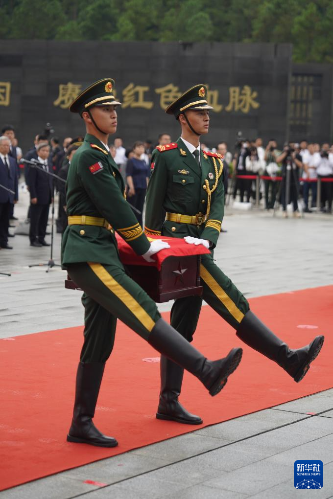 9月25日,禮兵抬黃公略烈士棺槨至烈士墓穴。新華社記者 周密 攝