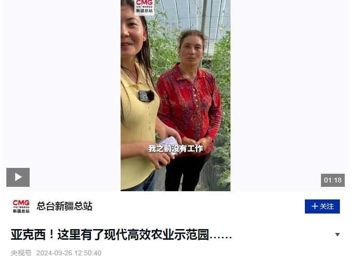 阿依謝姆古麗,在新疆喀什地區(qū)疏勒縣的山東省援疆項(xiàng)目“蔬樂”現(xiàn)代高效農(nóng)業(yè)示范園,從事西瓜種植工作已經(jīng)兩年了?!白鳛檗r(nóng)民的她,之前沒有收入?!闭劦竭@份工作,阿依謝姆古麗激動(dòng)得熱淚盈眶。