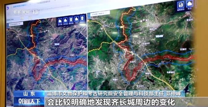 淄博市文物保護和考古研究院安全管理與科技部主任 范仲峰:有些地段山比較高,巡護員到達率可能不是太理想,尤其是在雨雪天氣,是登不到山頂?shù)?。我們充分運用了衛(wèi)星圖片對比功能,通過圖片的變化,會比較明確地發(fā)現(xiàn)齊長城周邊的變化,提高了我們巡護的視野。下一步我們可能會充分使用無人機,包括一些地理信息相關(guān)的最新數(shù)據(jù),補充和完善我們的巡護系統(tǒng)。