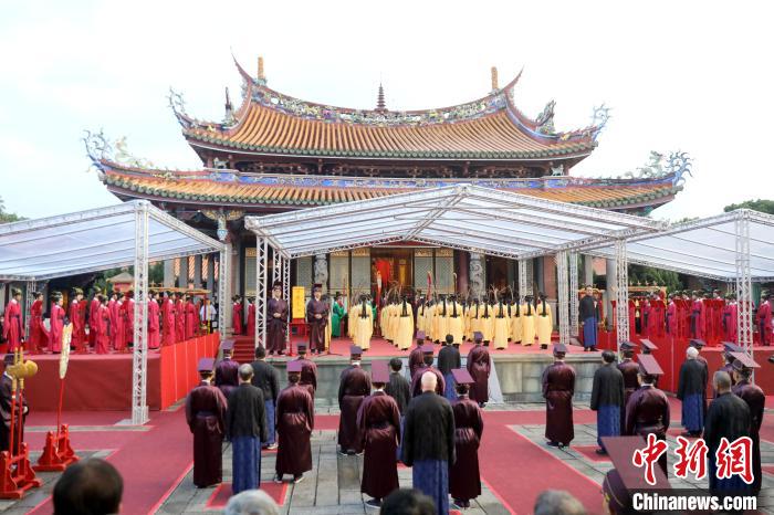 臺(tái)南孔廟創(chuàng)建于300多年前,是全臺(tái)第一座孔廟。當(dāng)天上午,臺(tái)南祭孔依循古禮舉行儀式,學(xué)生在大成殿前跳六佾舞,另有書院負(fù)責(zé)演奏祭孔音樂,全程約1小時(shí)。