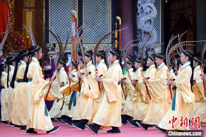 9月28日,臺(tái)北市各界紀(jì)念大成至圣先師孔子誕辰釋奠典禮在臺(tái)北孔廟舉行。 中新社記者 陳小愿 攝
