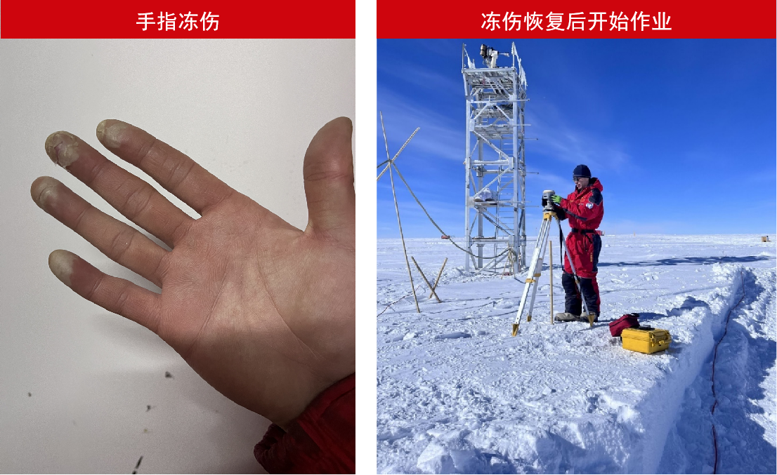 真正到了南極,他也親身體會(huì)了這些生死挑戰(zhàn)。在剛剛抵達(dá)昆侖站開展作業(yè)的過程中,因?yàn)樾枰c(diǎn)觸手機(jī)屏幕,不能穿戴厚手套,超過零下30度的極寒凍傷了他的手指,隨隊(duì)醫(yī)生診斷說再嚴(yán)重下去可能會(huì)有截肢的風(fēng)險(xiǎn)?!拔译y道我就這樣無法完成這次的任務(wù)了嗎?”在耿通強(qiáng)烈地請求下,醫(yī)生為他做了引流治療,傷情才得以好轉(zhuǎn)。而他也未等手指恢復(fù),便投入到緊張的科研工作中。